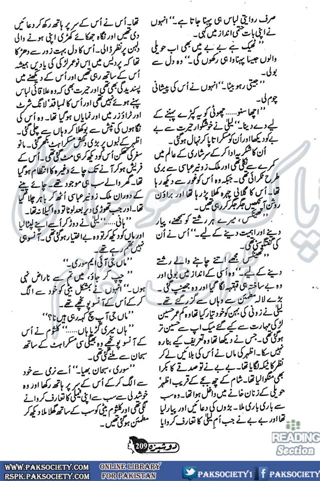 social romantic Urdu novel.It was published in Dosheeza Digest.