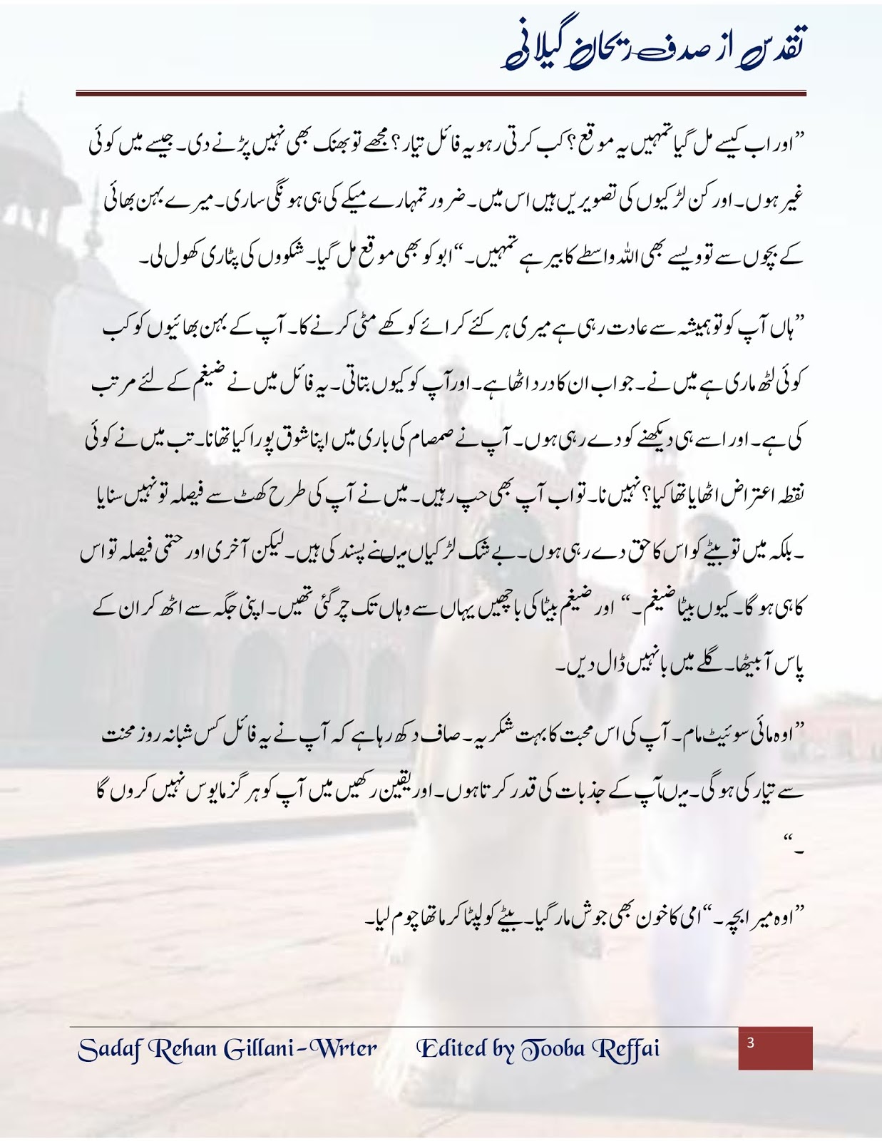 Taqadus novel by Sadaf Rehan Gillani